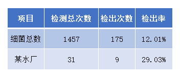 表1:《深圳市城市供水水質(zhì)公報(bào)》中某水廠細(xì)菌總數(shù)檢出率