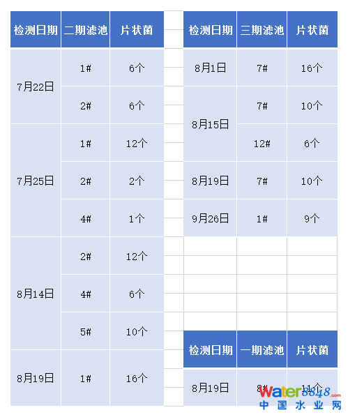 表2:某水廠進(jìn)出水中片狀菌檢出情況