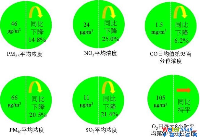 1-3月,全國337個地級及以上城市平均優(yōu)良天數(shù)比例為83.5%,同比上升6.6個百分點;120個城市環(huán)境空氣質(zhì)量達標,同比增加24個;PM2.5濃度為46微克/立方米,同比下降14.8%;PM10濃度為66微克/立方米,同比下降20.5%;O3濃度為105微克/立方米,同比持平;SO2濃度為11微克/立方米,同比下降21.4%;NO2濃度為24微克/立方米,同比下降25.0%;CO濃度為1.5毫克/立方米,同比下降6.2%。