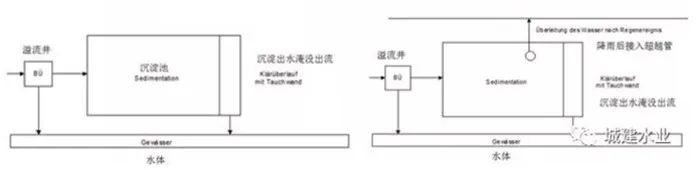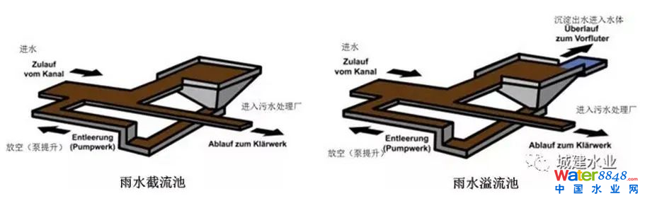 雨水溢流池:在合流制中帶有池子和具有凈化溢流水功能的儲(chǔ)存,和/或者沉淀空間設(shè)施。