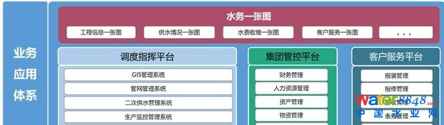 智慧水務(wù)"41111"工程,即四平臺(tái)一中心、一圖、一云、一網(wǎng)。四平臺(tái)是調(diào)度指揮平臺(tái)、客戶服務(wù)平臺(tái)、集團(tuán)管控平臺(tái)、綜合保障平臺(tái);一中心是指數(shù)據(jù)中心;一圖是實(shí)現(xiàn)不同業(yè)務(wù)場(chǎng)景的業(yè)務(wù)一張圖;一云是指基于公有云和私有云實(shí)現(xiàn)一朵混合云;一網(wǎng)是指全集團(tuán)使用統(tǒng)一的一張大網(wǎng)絡(luò)。
