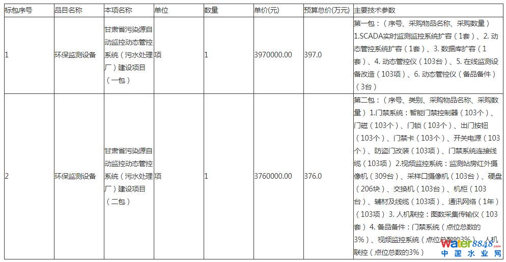 甘肅省生態(tài)環(huán)境調(diào)查中心甘肅省污染源自動(dòng)監(jiān)控動(dòng)態(tài)管控系統(tǒng)(污水處理廠)建設(shè)項(xiàng)目公開招標(biāo)公告