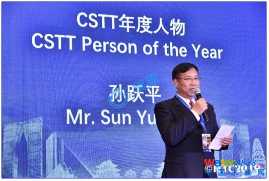 在頒獎晚會上,CSTT中國非開挖技術(shù)協(xié)會副理事長顏純文教授,親自把獎杯和榮譽(yù)證書授予給了孫躍平總經(jīng)理,并發(fā)表了簡短的祝詞,對他成功當(dāng)選“2018年中國非開挖技術(shù)年度人物”舉杯祝賀。