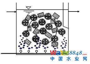 好氧載體流動床技術(CBR)由于采用適合于生物生長、內部受保護的大比表面的載體(見圖2),使得該工藝:(1)負荷高、占地;(2)耐沖擊性強、性能穩(wěn)定、運行可靠;(3)出水水質好,特別是去除難降解COD和NH3-N硝化;且(4)運行簡單,無需特殊維護。