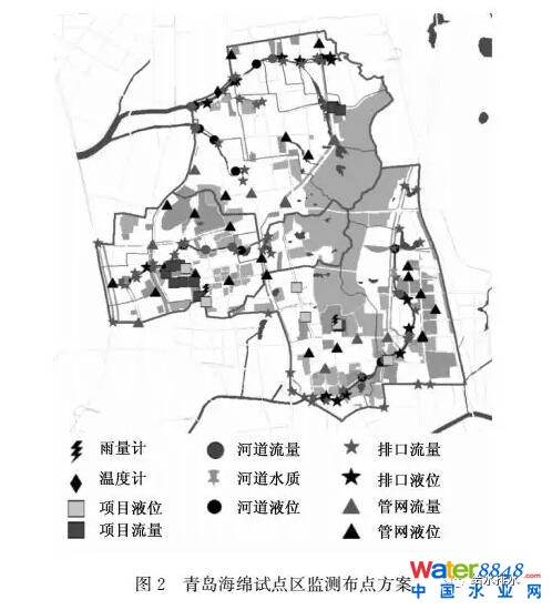 根據(jù)降雨徑流的匯集過(guò)程,試點(diǎn)區(qū)內(nèi)樓山后河、樓山河、板橋坊河及大村河為主要受納水體,對(duì)河道水量和水質(zhì)進(jìn)行監(jiān)測(cè),可對(duì)最終情況進(jìn)行評(píng)估。另外,青島市年降雨量小于1000mm,根據(jù)海綿城市績(jī)效考核要求,需對(duì)地下水水資源情況進(jìn)行監(jiān)測(cè)。