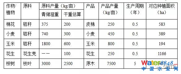 與4.1計算結果比照可以看出小麥、棉花、玉米、桉樹均可在種植選擇范圍內,滿足原料需求。
