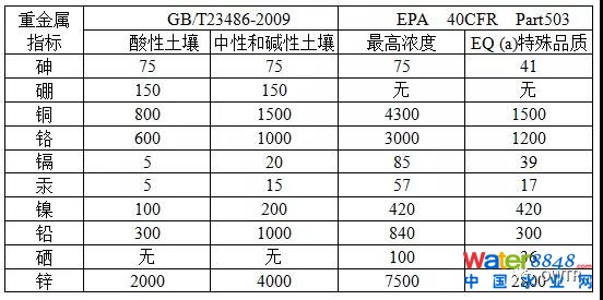 與美國EPA40CFRPart503重金屬濃度指標對比為例,詳見下表。