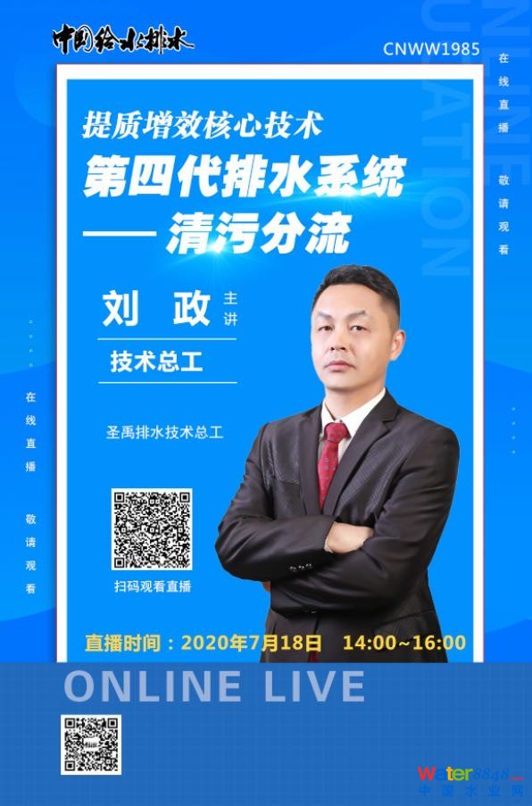 第二位 專家 圣禹排水 劉政 技術(shù)總工,直播題目為:提質(zhì)增效核心技術(shù)第四代排水系統(tǒng)——清污分流