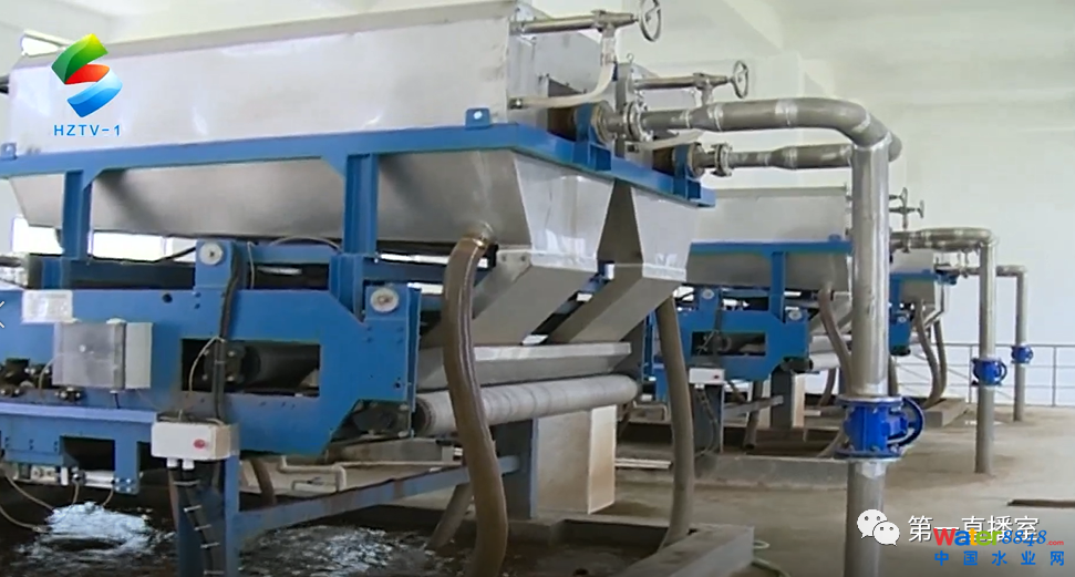 在惠陽城區(qū)第二污水處理廠,壓濾機(jī)在運作中,