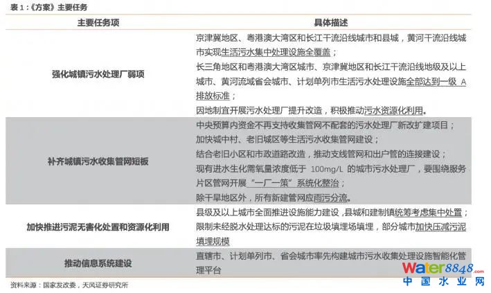 1.1. 污水處理補短板方案頒布,資源化、管網(wǎng)、污泥處置為三大關(guān)鍵詞