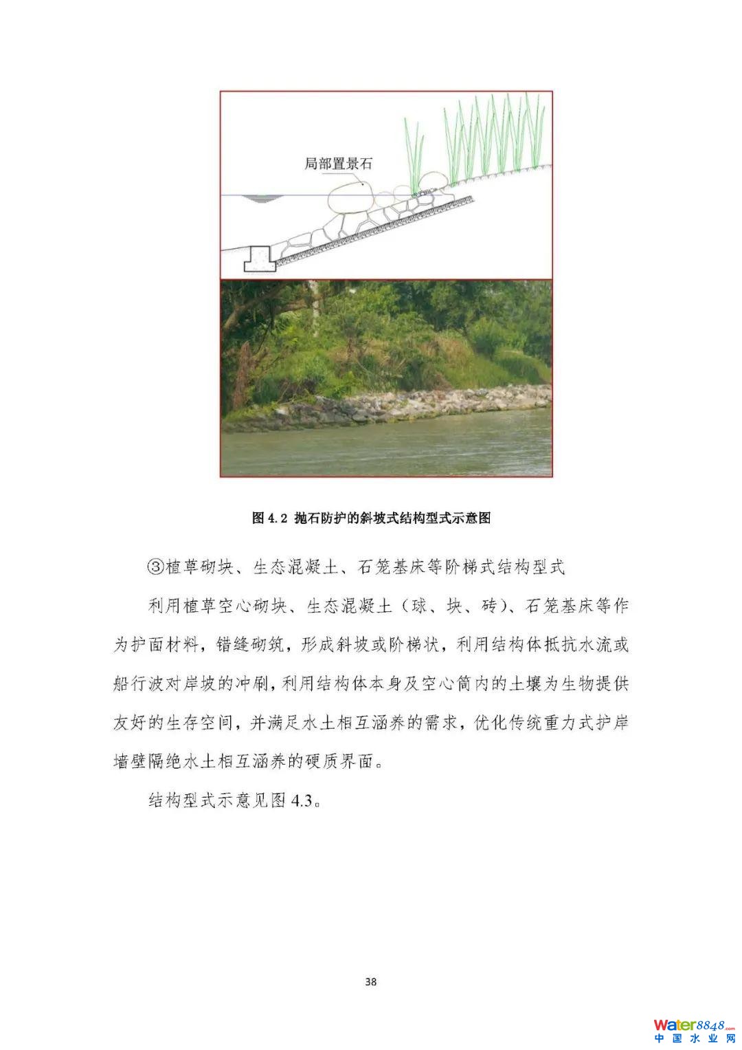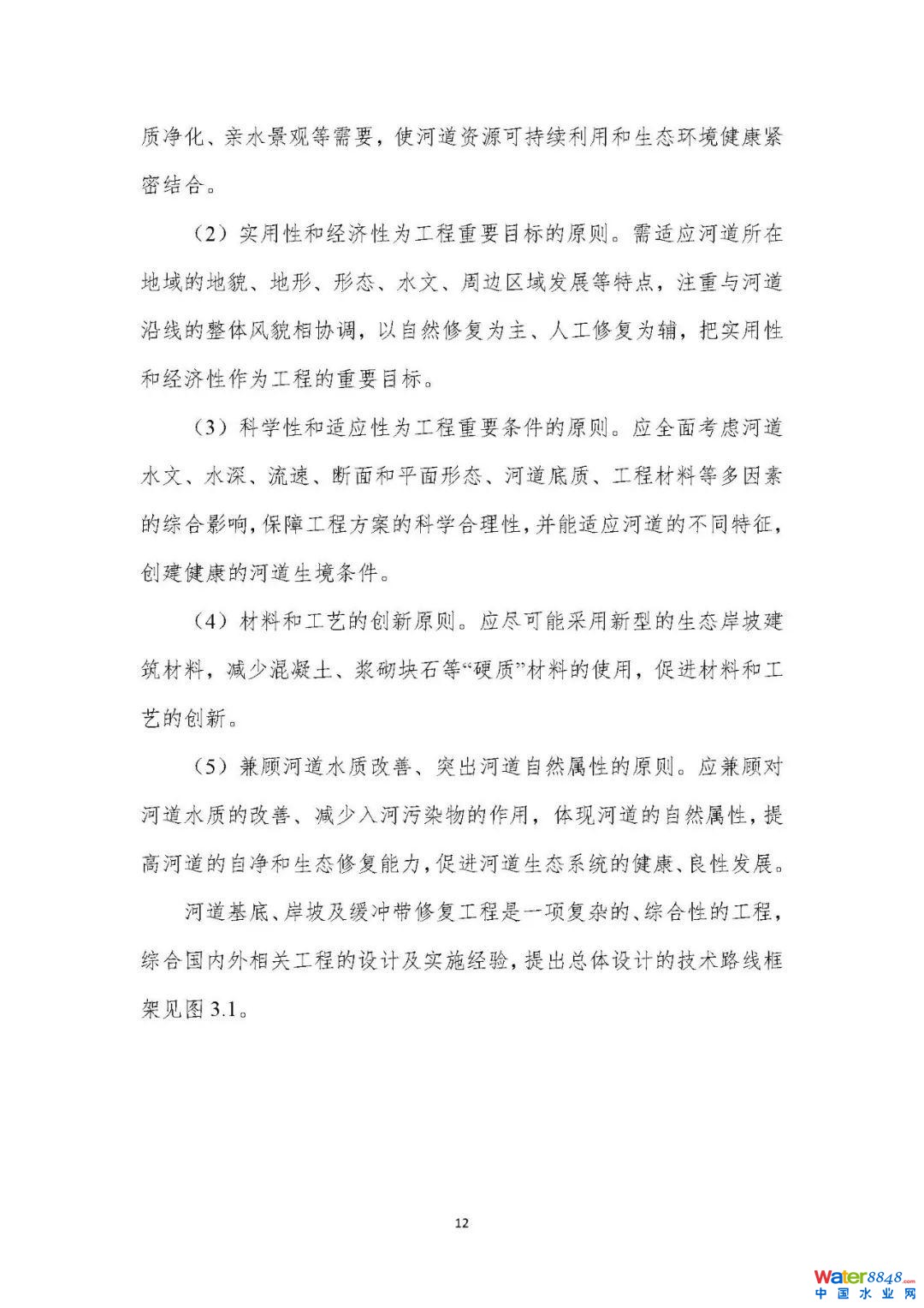 雖然此指南僅為指導(dǎo)性文件,并非行業(yè)標(biāo)準(zhǔn),但它對(duì)從業(yè)人員依然具有重要的參考價(jià)值。該指南的內(nèi)容涵蓋了河流生態(tài)環(huán)境調(diào)查與問題診斷、河流生態(tài)修復(fù)總體設(shè)計(jì)、河道形態(tài)保持、基底及岸坡修復(fù)、河道緩沖帶構(gòu)建、河道生態(tài)多樣性修復(fù)、河道水質(zhì)凈化等方面,以及相關(guān)工程的維護(hù)與管理、投資估算方法等。
