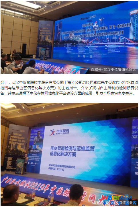 會上,武漢中儀物聯(lián)技術(shù)股份有限公司上海分公司總經(jīng)理李維先生受邀作《排水管道檢測與運(yùn)維監(jiān)管信息化解決方案》的主題報(bào)告。介紹了我司自主研制的檢測修復(fù)設(shè)備,并重點(diǎn)講解了中儀在管網(wǎng)信息化平臺建設(shè)方面的成果,引發(fā)全場嘉賓高度關(guān)注。