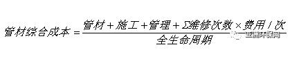利用管材評(píng)估體系,進(jìn)行如下管材綜合成本的計(jì)算,僅供參考: