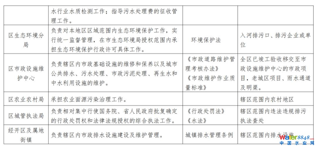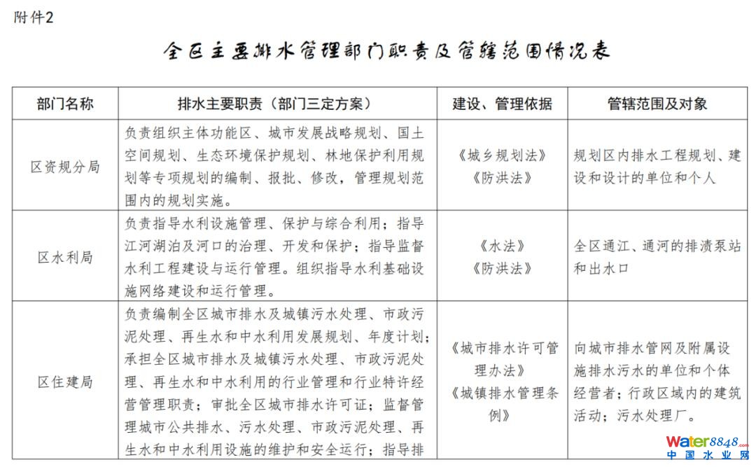 2.全區(qū)主要排水管理部門職責(zé)及管轄范圍情況表