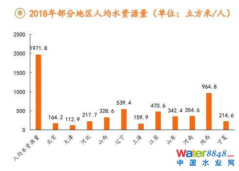 根據(jù)《中國(guó)統(tǒng)計(jì)年鑒》,2018 年中國(guó)人均水資源量為 1971.8 立方米/人,僅為世界平均水平的 1/4,是全球人均水資源最貧乏的國(guó)家之一。全國(guó)有 11 個(gè)。ㄗ灾螀^(qū)、直轄市)人均低于1000立方米的缺水警戒線。
