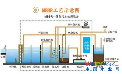 移動(dòng)床生物膜反應(yīng)器(MBBR)工藝是一種高效的利用微生物進(jìn)行污水處理的技術(shù),通過(guò)向反應(yīng)器中投加一定數(shù)量的懸浮載體,提高反應(yīng)器中的生物量及生物種類,從而達(dá)到提高反應(yīng)器的處理效率和效果。該工藝具有凈化效果好、出水水質(zhì)高、裝備化水平高、能耗低、占地省等優(yōu)點(diǎn)。