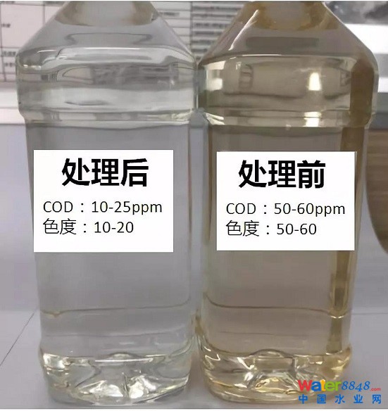 圖為膜芬頓技術(shù)處理前后水質(zhì)對(duì)比