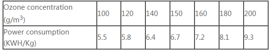 臭氧在氣體中的濃度越高,產(chǎn)生同樣臭氧量消耗的氧氣就越低,臭氧的成本就越低。同時高濃度的臭氧更有利于臭氧的溶解和氧化反應(yīng)。
