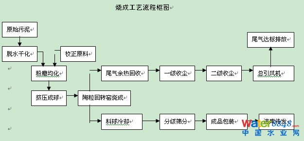 由于廢棄污泥來自不同源頭,成分各異。目前,已經(jīng)掌握可以按工藝要求指標(biāo)采用校正原料予以調(diào)整匹配,所以絕大部分污泥都有可能實(shí)現(xiàn)利用。 要求二、關(guān)于污泥量: 從廣義來講污泥源頭是逐年遞增的,但如定點(diǎn)建陶粒廠,對(duì)其泥源供應(yīng)必須予以穩(wěn)定為確保。陶粒燒制廠是一個(gè)企業(yè),它是有一個(gè)基本合理的規(guī)模要求的。 目前市上一般中小型企業(yè)是以5萬立方米/年、10萬立方米/年、20 ~ 30萬立方米/年的規(guī)模。如,以一般起點(diǎn)規(guī)模5萬立方米/年為例,年需干基污泥約5萬噸左右,具體數(shù)量需按原始含水污泥的水分,根據(jù)具體情況按物料平衡予以具體確定。由此,如擬建陶粒廠首先應(yīng)對(duì)周圍污泥源,作具體的調(diào)查。如果多點(diǎn)供泥,泥源離陶粒廠距離一般不宜大于50公里。 要求三、陶粒制作系統(tǒng)技術(shù): 目前,我國(guó)陶粒燒制一般采用回轉(zhuǎn)窯焚燒工藝,與其匹配的原料制備、污泥脫水、干化、粉磨、窯外成球、窯內(nèi)成球、燒成熱工、篩選分級(jí)、原料化驗(yàn)控制、成品出廠檢測(cè)并其相適應(yīng)的燒成技術(shù),設(shè)備配套、自動(dòng)化控制,已有成熟的經(jīng)驗(yàn)。 要求四、陶粒制作的基本工藝流程: 陶粒制作的基本工藝流程,以下燒成工藝流程的框圖所示: