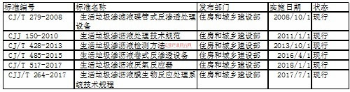 ——《生活垃圾滲瀝液膜生物反應處理系統(tǒng)技術規(guī)程》(CJJ/T 264-2017)。