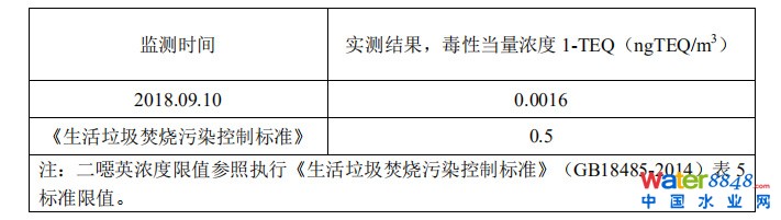 從已有同類項目監(jiān)測結(jié)果可知,廢氣中二噁英濃度極低,參照《生活垃圾焚燒污染控制標(biāo)準(zhǔn)》(GB18485-2014)表 5 標(biāo)準(zhǔn)限值,其濃度遠(yuǎn)低于標(biāo)準(zhǔn)值(0.5ngTEQ/m3),占標(biāo)率為3.2‰。