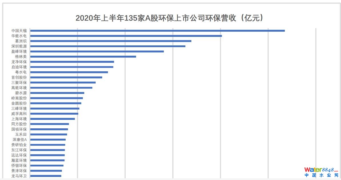 2020年上半年A股環(huán)保上市公司環(huán)保營(yíng)收TOP20