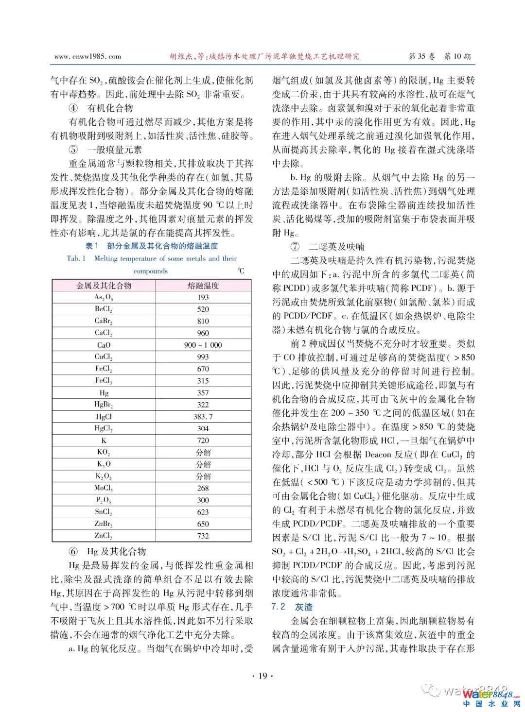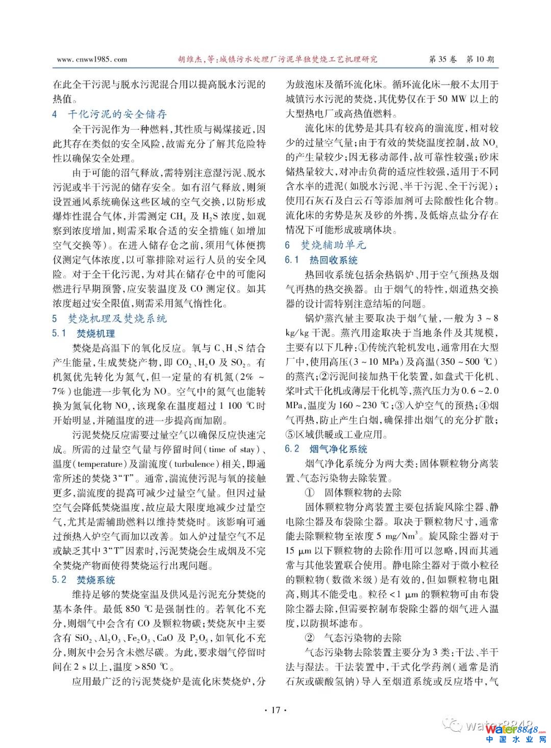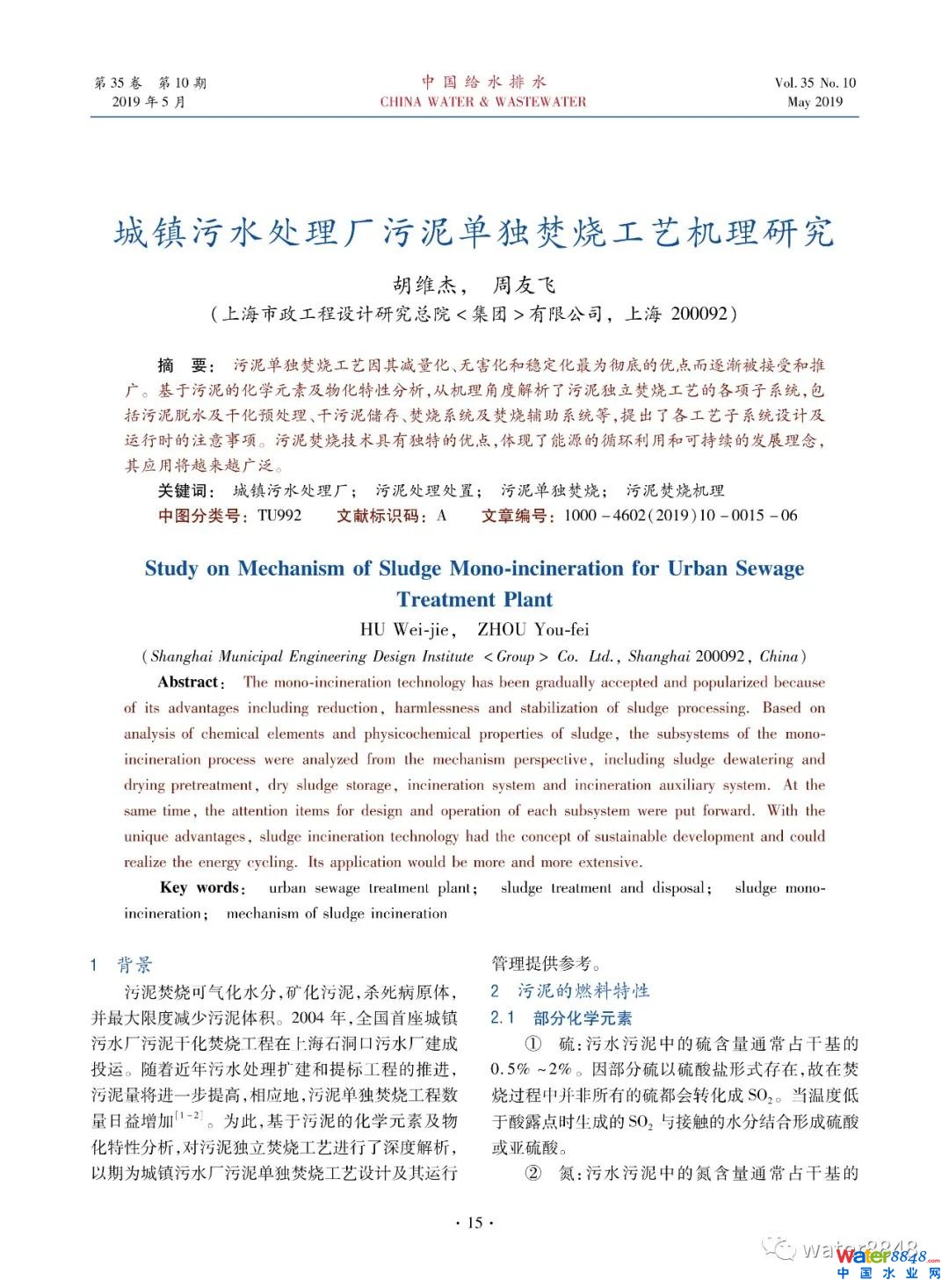 胡維杰總工:城鎮(zhèn)污水處理廠污泥單獨(dú)焚燒工藝機(jī)理研究