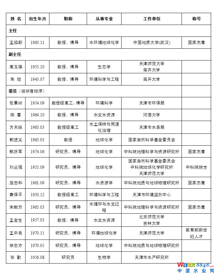 天津市水資源與水環(huán)境重點實驗室學術委員會組成人員