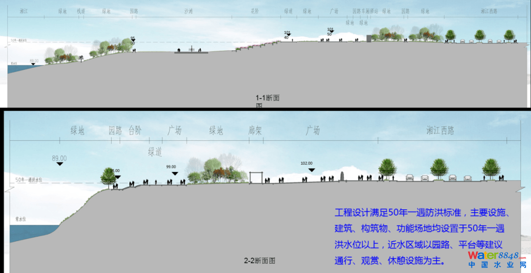 湘江西岸片區(qū)部分低洼帶雨季湘江會(huì)倒灌(湘江西岸片區(qū)伍家院段地勢(shì)低洼,每年汛期湘江水倒灌,2017年很多房屋淹到二層,形成嚴(yán)重的城市內(nèi)澇)。湘江西路采用路堤結(jié)合設(shè)計(jì)理念,建成后將解決這一民生問題。