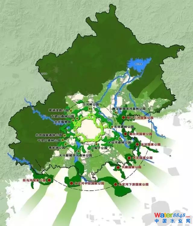 3.藍綠交融:三環(huán)、五水、九楔。河湖、綠地是最主要的海綿體,是控制消納雨水的主要存蓄空間。