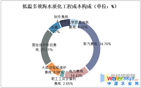 對(duì)于1萬(wàn)t/d的低溫多效海水淡化工程,占總成本比例最高的分別為:蒸汽費(fèi)用、固