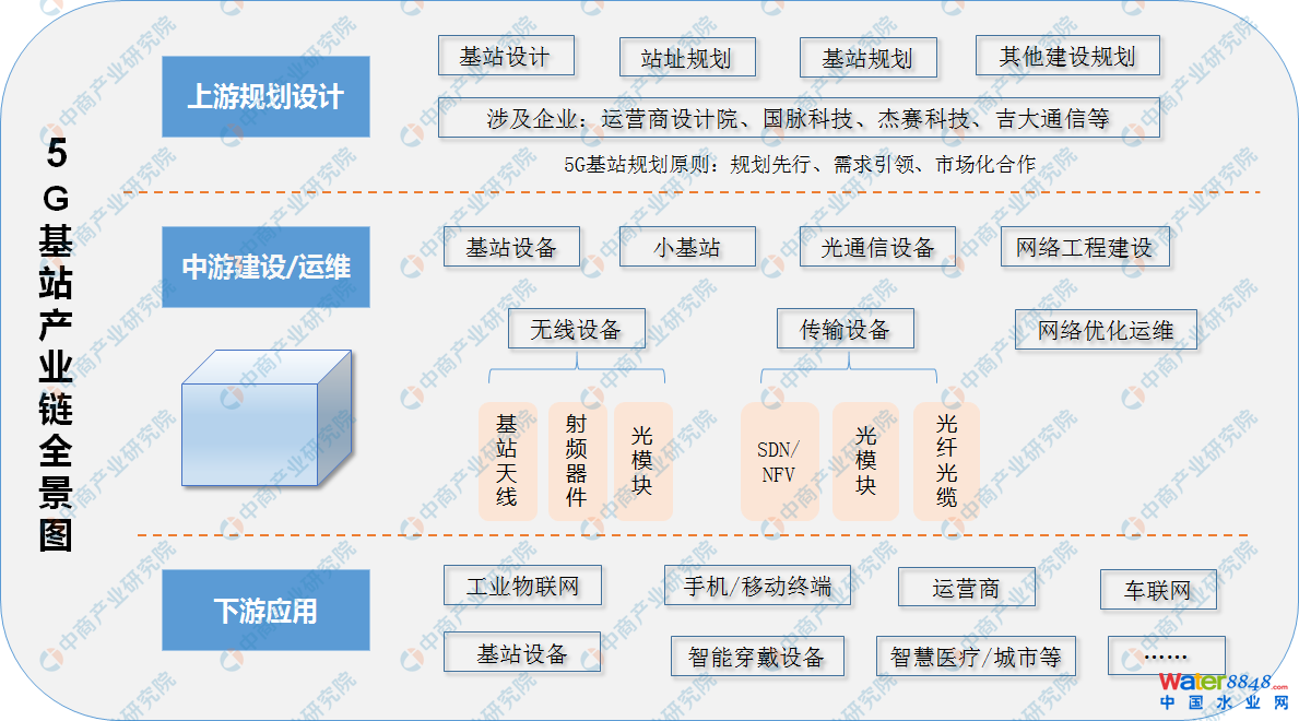 5G發(fā)展,基站先行。5G基站的選址建設,是保證5G商用信號覆蓋的基礎,所以,5G基站建設是5G產(chǎn)業(yè)布局的第一步。2020年5G迎來大規(guī)模建設,5G基站目標不斷刷新。通信運營商將正式開啟5G大規(guī)模集采,帶動產(chǎn)業(yè)鏈。從5G基站產(chǎn)業(yè)鏈來看,主要涉及上游規(guī)劃設計、中游建設/運維以及下游應用三大環(huán)節(jié)。其中在中游環(huán)節(jié),涉及產(chǎn)業(yè)較多,包括基站設備、小基站、光通信設備、網(wǎng)絡工程建設、無線設備、傳輸設備以及網(wǎng)絡優(yōu)化與運維等。產(chǎn)業(yè)鏈下游端,5G應用領域廣泛,涉及物聯(lián)網(wǎng)、智能裝備、手機/移動終端等等。