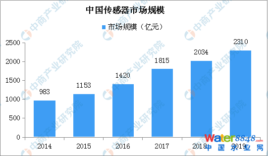 傳感器是一種檢測裝置,能感受到被測量的信息,并將檢測感受到的信息,按一定規(guī)律轉換成為電信號或其他所需形式的信息輸出,以滿足信息的傳輸、處理、計量、存儲等要求。隨著物聯(lián)網(wǎng)信息處理和應用服務等產(chǎn)業(yè)的發(fā)展,物聯(lián)網(wǎng)行業(yè)市場規(guī)模迅速擴大。據(jù)數(shù)據(jù)顯示,“十二五”期間物聯(lián)網(wǎng)市場年復合增長率達到25%。按照年復合增長率24%來計算,預計到2020年,中國物聯(lián)網(wǎng)的整體規(guī)模將達2.2萬億元。