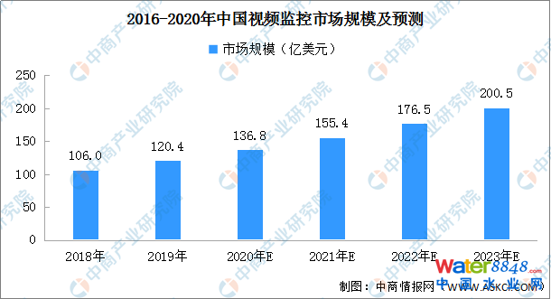 近年來,我國監(jiān)控系統(tǒng)市場經(jīng)歷了持續(xù)強勁的發(fā)展。其中,視頻監(jiān)控市場的發(fā)展速度超過全球其他地區(qū)。數(shù)據(jù)顯示,2017年我國視頻監(jiān)控市場規(guī)模突破2000億元。隨著平安城市、智慧城市等建設推進,視頻監(jiān)控標清設備和高清設備的市場需求將進一步打開,同時催生數(shù)據(jù)智能分析的新市場。預計2020年視頻監(jiān)控市場規(guī)模將超136.8億美元,到2023年有望超過200億美元。