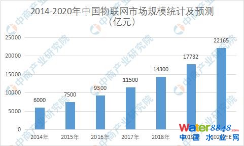 2014年,國內(nèi)物聯(lián)網(wǎng)產(chǎn)業(yè)規(guī)模突破6000億元,同比增長24%;截止到2015年底,隨著物聯(lián)網(wǎng)信息處理和應用服務等產(chǎn)業(yè)的發(fā)展,中國物聯(lián)網(wǎng)產(chǎn)業(yè)規(guī)模增至7500億元,“十二五”期間年復合增長率達到25%。十三五以來,我國物聯(lián)網(wǎng)市場規(guī)模穩(wěn)步增長,預計2020年中國物聯(lián)網(wǎng)市場規(guī)模將突破2萬億。預計“十三五”期間年均復合增長率達24%。