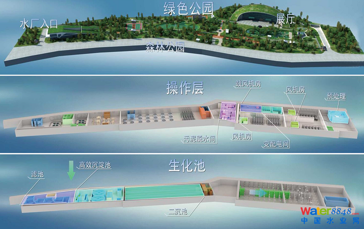 環(huán)境友好、資源節(jié)約、生態(tài)安全的下沉式再生水處理系統(tǒng),是傳統(tǒng)污水處理廠的全面升級,占地僅為傳統(tǒng)地面建廠的1/3,有效節(jié)約土地,節(jié)省管網(wǎng)等投資,并充分利用地上空間建設(shè)城市生態(tài)綜合體,是人口密集、城市中心城區(qū)市政污水處理系統(tǒng)創(chuàng)新的必由之路。