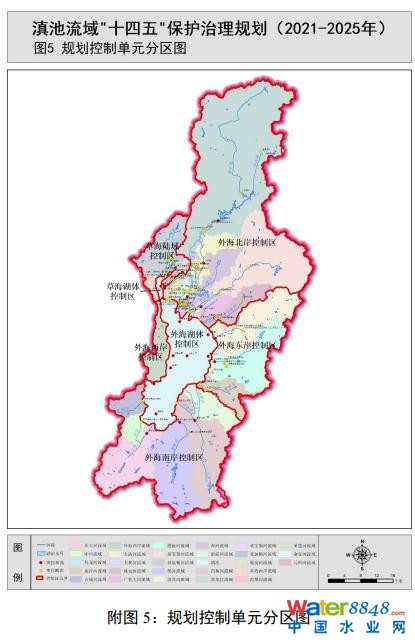 “十四五”期間繼續(xù)推進(jìn)流域控制單元精細(xì)化管理;趪(guó)家構(gòu)建的包括全國(guó)—流域—水功能區(qū)—控制單元—行政區(qū)域五個(gè)層級(jí)、覆蓋全國(guó)的流域空間管控體系,進(jìn)一步與國(guó)家對(duì)接細(xì)化,通過(guò)控制斷面將流域成果歸集到控制單元,建立排放源和單元水質(zhì)明確清晰的響應(yīng)關(guān)系,將流域生態(tài)環(huán)境保護(hù)責(zé)任層層分解到各級(jí)行政區(qū)域;結(jié)合實(shí)施河長(zhǎng)制、湖長(zhǎng)制,建立完善責(zé)任體系。根據(jù)國(guó)家重點(diǎn)流域控制單元匯水區(qū)劃分結(jié)果及昆明市對(duì)滇池流域的水質(zhì)考核要求,共劃分為 27 個(gè)控制單元,在對(duì) 27 個(gè)控制單元匯水區(qū)特點(diǎn)、環(huán)境問(wèn)題診斷及防治措施進(jìn)行分析研究的基礎(chǔ)上,歸并相似單元,將 27 個(gè)控制單元并為草海陸域控制區(qū)、外海北岸控制區(qū)、外海東岸控制區(qū)、外海南岸控制區(qū)、外海西岸控制區(qū)、草海湖體控制區(qū)和外海湖體控制區(qū),根據(jù)關(guān)鍵問(wèn)題成因,制定各控制區(qū)水生態(tài)環(huán)境保護(hù)要點(diǎn)。