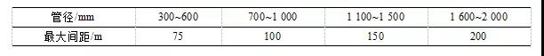 表1 檢查井在直線段的最大間距