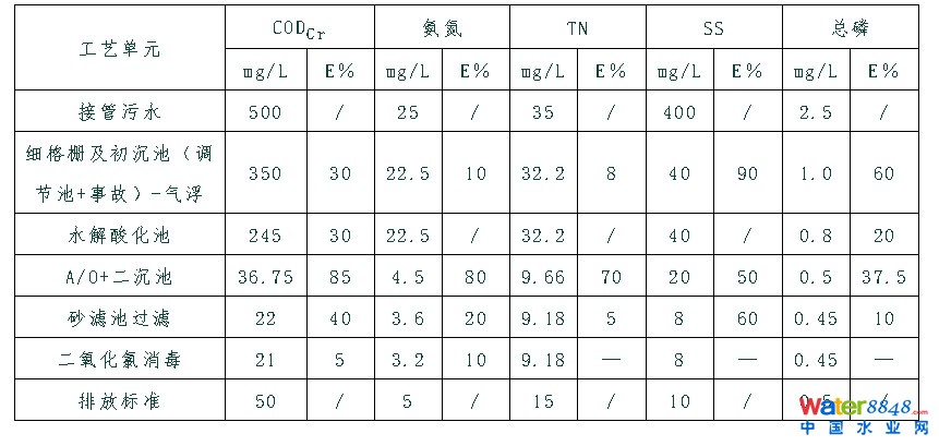 、傥鬯幚砉に嚕汗こ滩捎“粗格柵及進水泵房+細格柵及初沉池+調(diào)節(jié)池(事故池)+氣浮池+水解酸化池+A/O生化池+二沉池+普通砂濾池+二氧化氯消毒”的組合處理工藝。