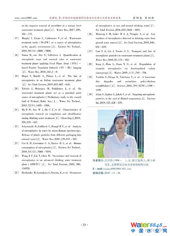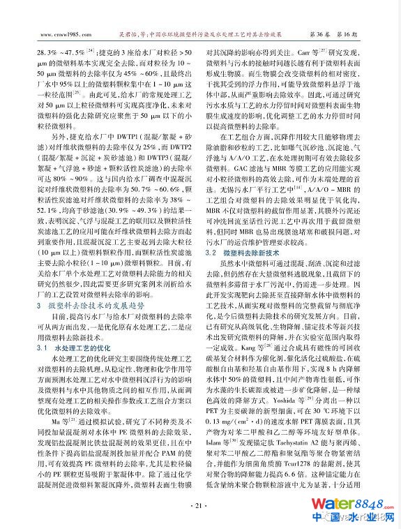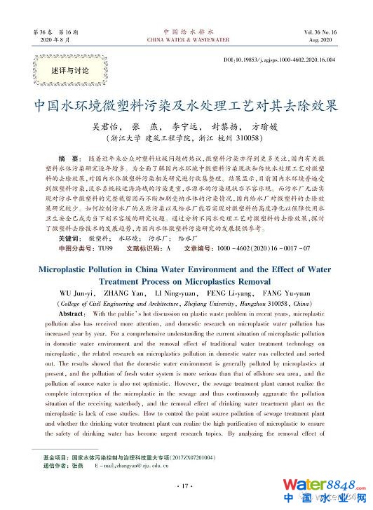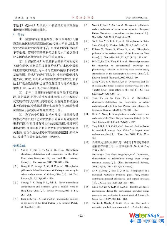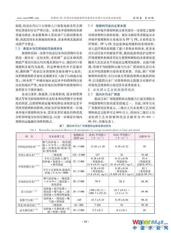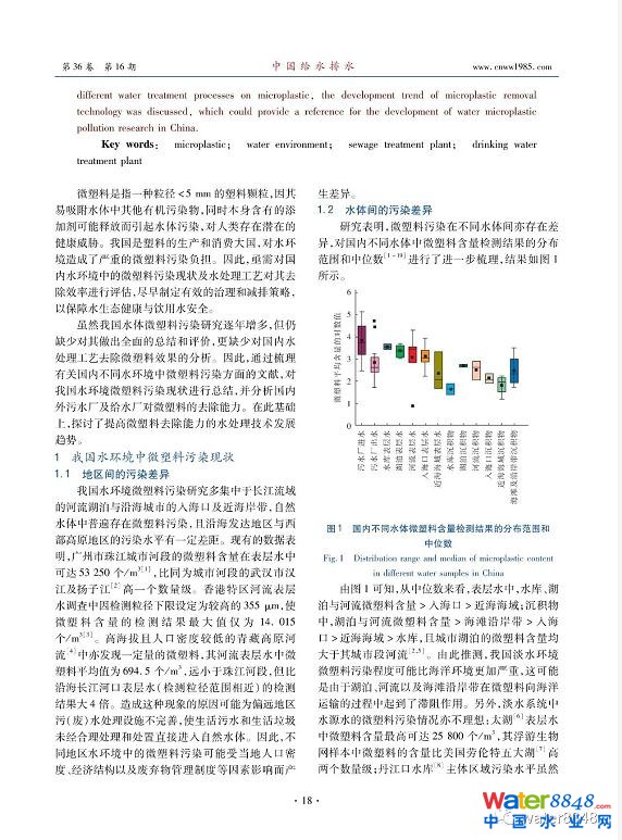 中國水環(huán)境微塑料污染及水處理工藝對(duì)其去除效果