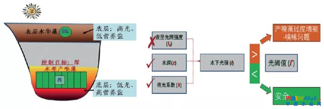 圖6 基于光調(diào)控的水庫產(chǎn)嗅藻調(diào)控技術(shù)原理示意圖
