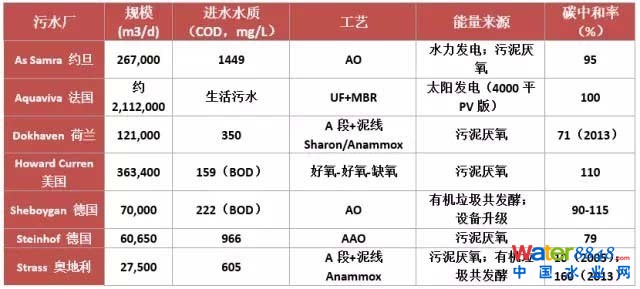 表1 目前國際上實(shí)現(xiàn)能量自給/碳中和的污水廠案例