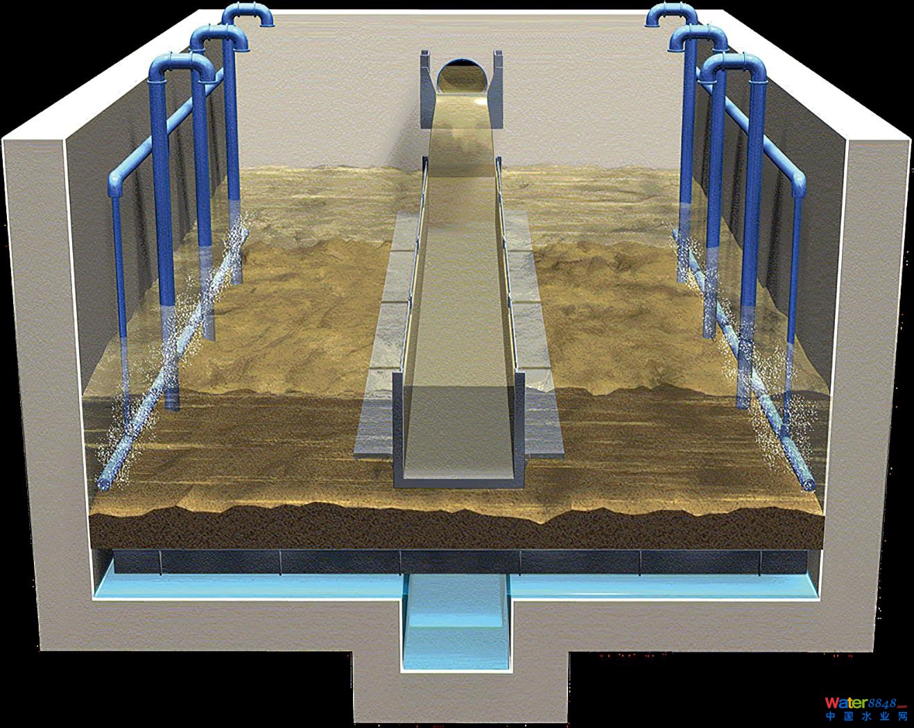 隨著過濾過程的持續(xù)進(jìn)行,污水中非常微小的顆粒被截留在濾床表面。細(xì)顆粒進(jìn)入砂粒間的空隙并被截留。此時,大顆粒則會完全覆蓋濾床表面,從而使過濾單元內(nèi)水位高出濾床表面,水頭損失逐漸加大。