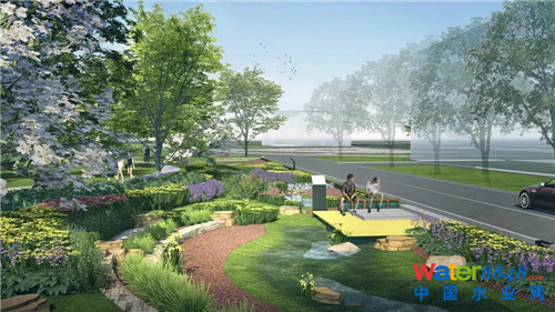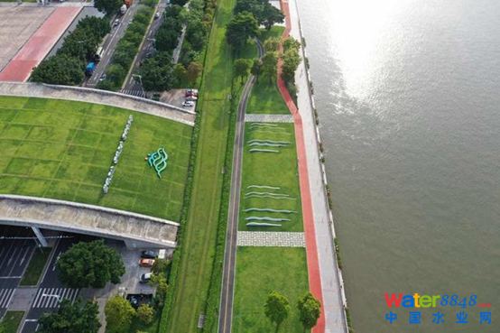 緩坡堤防改造增加堤防斷面,增強(qiáng)了堤防防洪能力,透水路面、生態(tài)樹溝、雨水花園等海綿城市設(shè)施實(shí)現(xiàn),小雨不積水、大雨不內(nèi)澇、水體不黑臭、熱島有緩解。