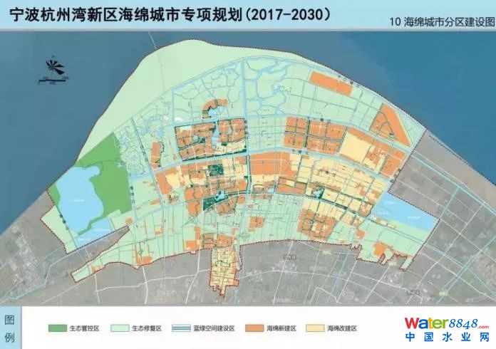 在《寧波杭州灣新區(qū)海綿城市專項(xiàng)規(guī)劃(2017—2030年)》中,出于新區(qū)獨(dú)特的地理位置、氣候條件、土地狀況及水文特點(diǎn),寧波杭州灣新區(qū)海綿城市建設(shè)將因地制宜,多措并舉,作好“滲、滯、蓄、凈、用、排”等文章。根據(jù)專項(xiàng)規(guī)劃,新區(qū)海綿城市規(guī)劃覆蓋整個(gè)行政區(qū)范圍,重點(diǎn)建設(shè)區(qū)為城市建設(shè)用地,其中,12.8平方公里濱海新城啟動(dòng)區(qū)塊及23.5平方公里南部新城板塊將全面按照海綿城市要求建設(shè)。