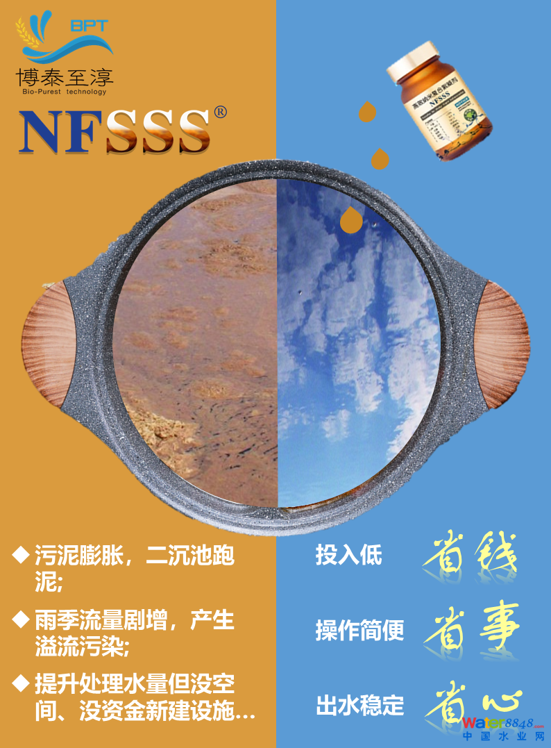 NFSSS與PAC區(qū)別在于:聚合氯化鋁(PAC)是無機(jī)絮凝劑,可去除污水懸浮物(SS),主要應(yīng)用于二沉池出水后深度處理工藝,絮凝沉淀后主要為無機(jī)污泥。而NFSSS絮凝沉降機(jī)理主要為吸附電中和及吸附架橋作用,可以使二沉池污泥快速形成絮凝體而實(shí)現(xiàn)快速沉降,主要應(yīng)用于二沉池,針對的是二沉池活性污泥跑泥問題,投加點(diǎn)為二沉池前端。