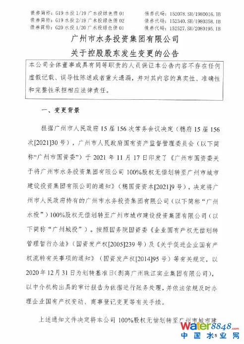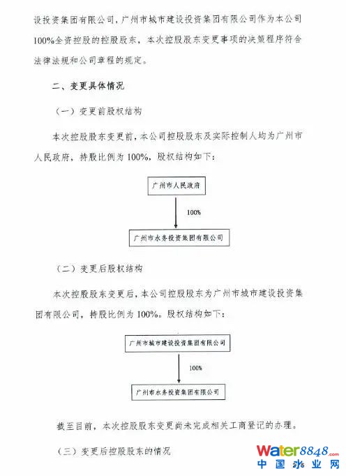 廣州水務(wù):公司控股股東變更為廣州城投
