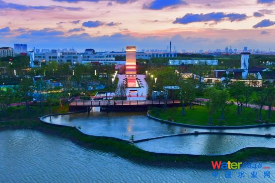 服務(wù)上海嘉定南翔老鎮(zhèn),總處理規(guī)模15萬噸/日,地面綠化率近60%,公園內(nèi)水系用水及兩萬多平方米的生態(tài)湖,均為處理后達標的高品質(zhì)再生水。