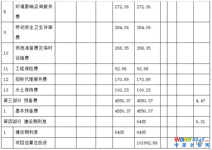 根據(jù)婺源縣發(fā)展和改革委員會(huì)批復(fù)通過(guò)的可行性研究報(bào)告,本項(xiàng)目總投資101992.86萬(wàn)元。其中:建筑安裝工程費(fèi)用84157.95萬(wàn)元,工程建設(shè)其他費(fèi)用6849.54萬(wàn)元,預(yù)備費(fèi)4550.37萬(wàn)元,建設(shè)期利息為6435萬(wàn)元。