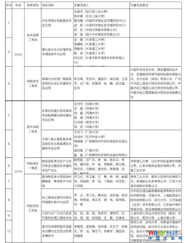 附:污水處理行業(yè)歷屆國(guó)家科技獎(jiǎng)勵(lì)“三大獎(jiǎng)”學(xué)習(xí)統(tǒng)計(jì)
